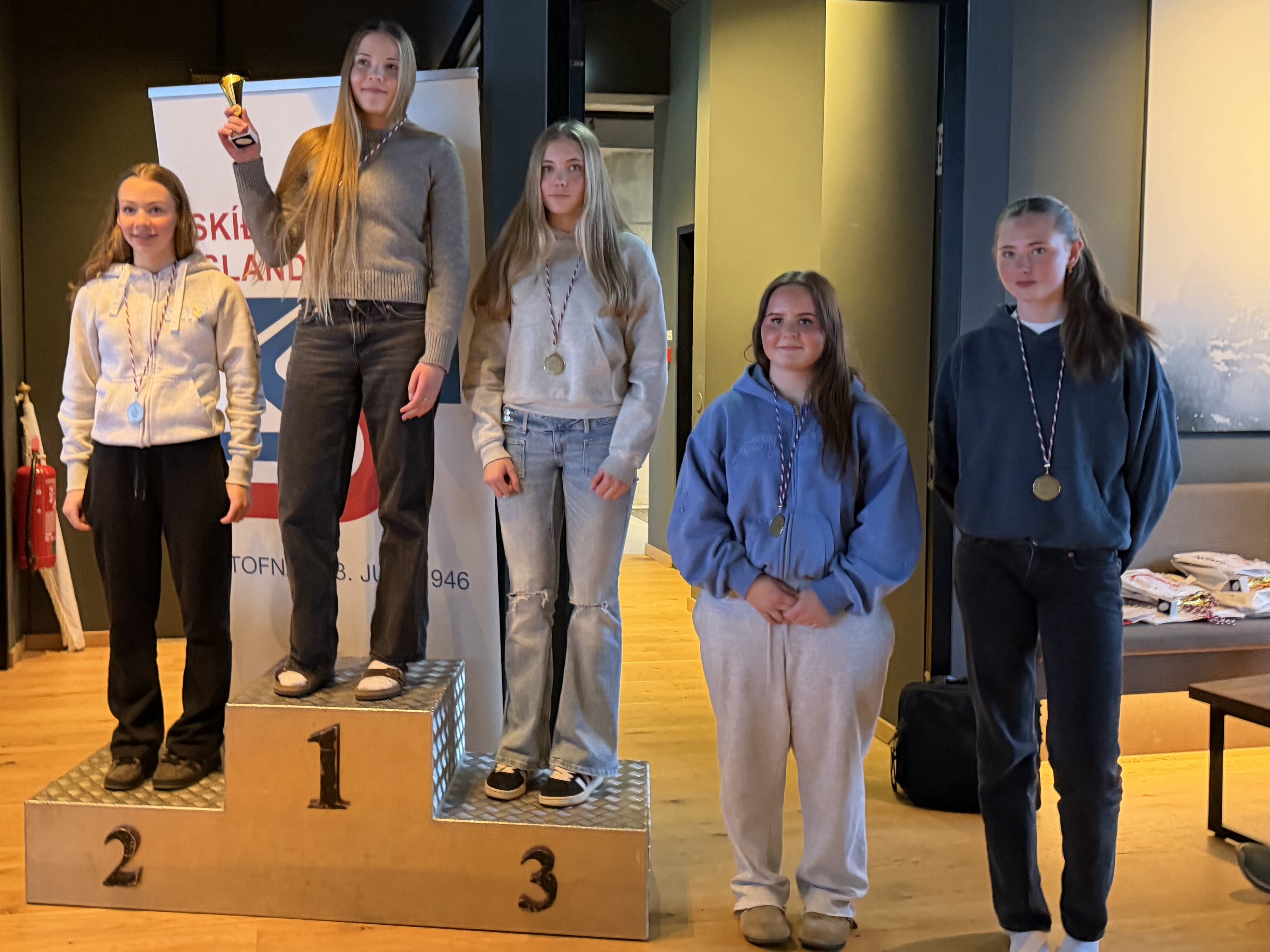 Mundína Ósk Þorgeirsdóttir úr Skíðafélagi Siglufjarðar og Barri Björgvinsson frá Skíðafélagi Dalvíkur voru bæði þrefaldir íslandsmeistarar í 14 – 15 ára flokki.